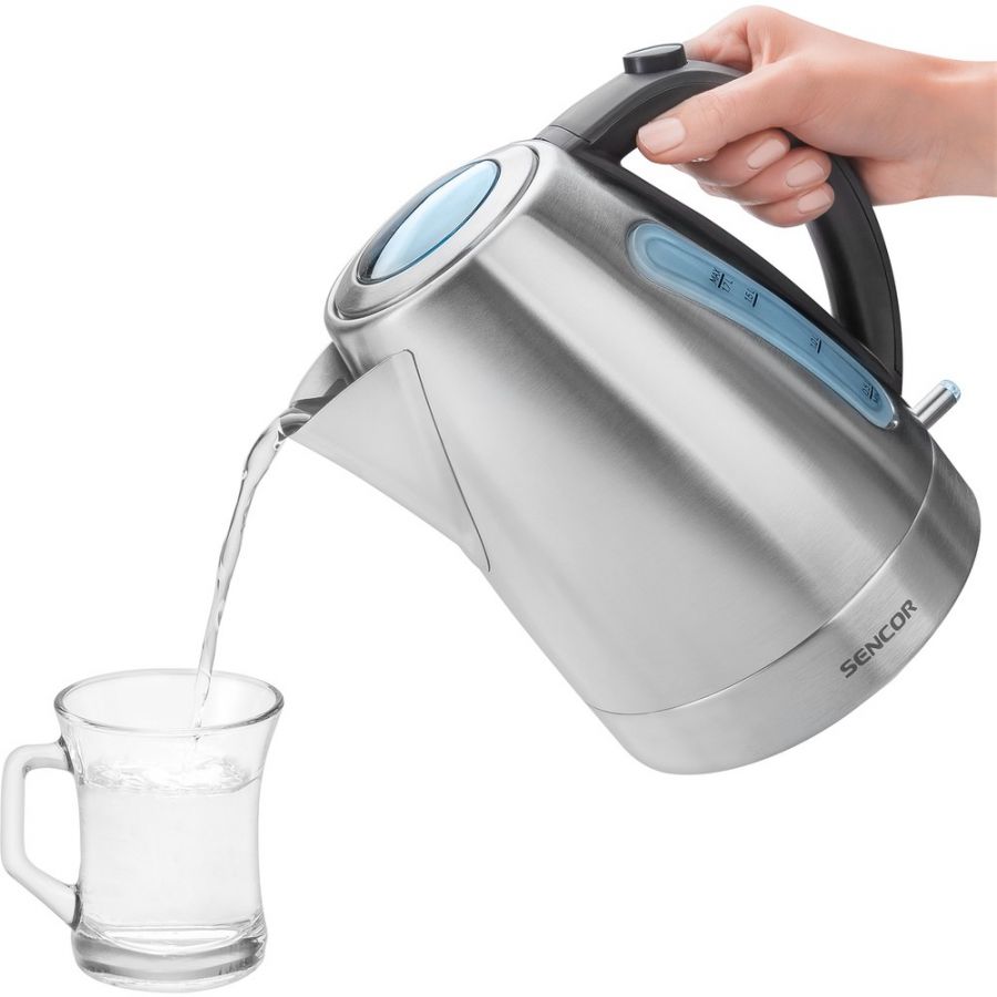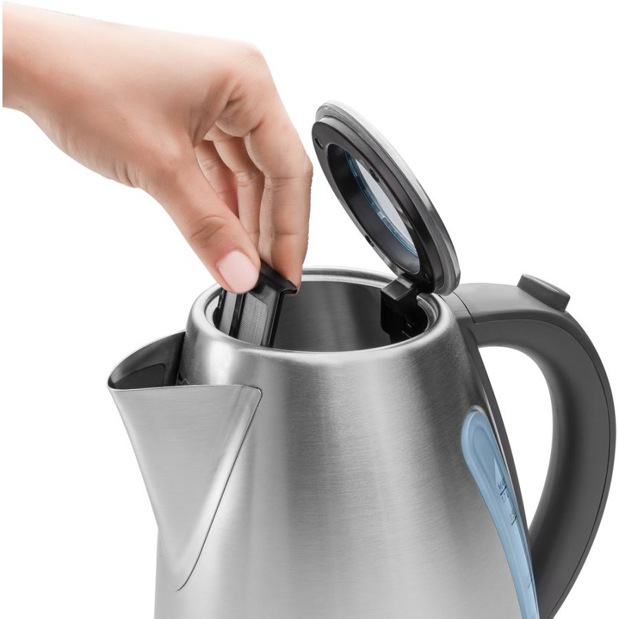 Rychlovarná konvice o objemu 1,7 l vody. Má ukazatel hladiny vody, středový 360° STRIX konektor a trojité bezpečnostní jištění.