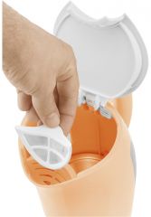 - Snadné otevírání víka stisknutím tlačítka v horní části rukojeti