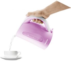 Plastová rychlovarná konvice o objemu 1,5 l. Má oboustranný vodoznak s modrým podsvícením, trojnásobné bezpečnostní jištění, světelnou indikaci provozu a zakrytou topnou spirálu.