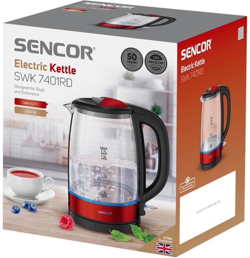 Skleněná rychlovarná konvice o objemu 1,7 l. Má vnitřní LED osvětlení, světelnou indikaci provozu a zakrytou topnou spirálu.