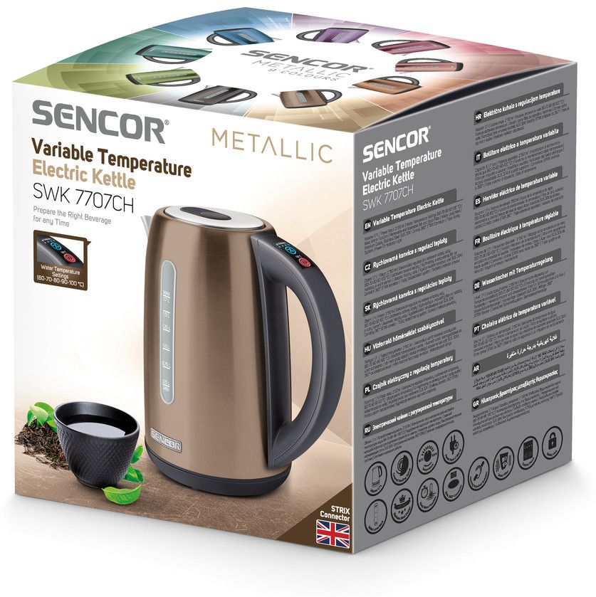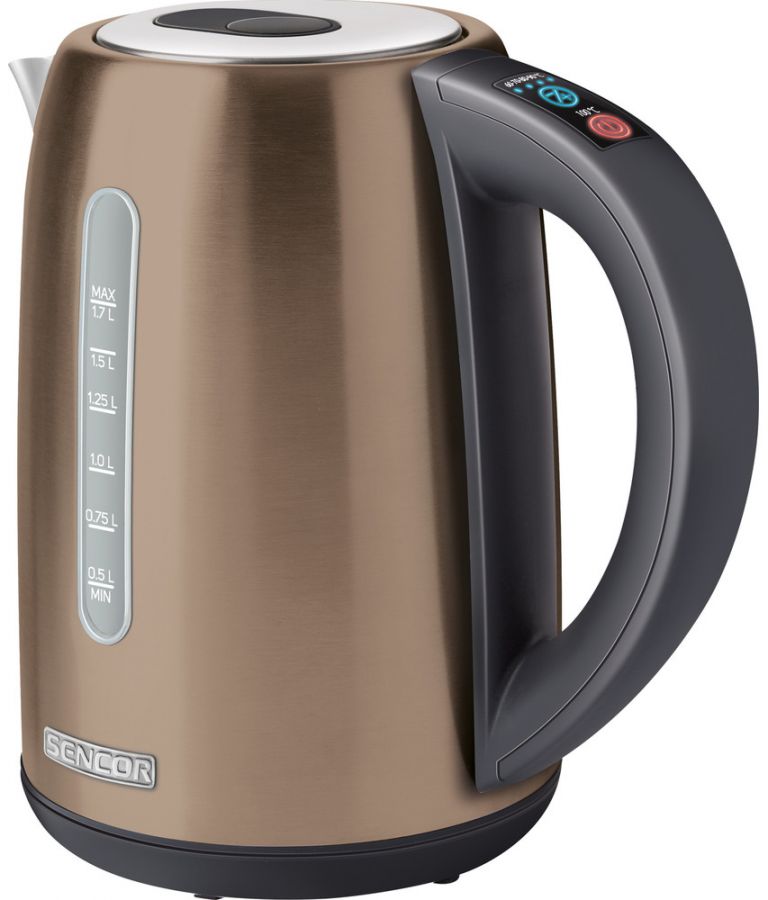 Rychlovarná konvice o objemu 1,7 l. Má regulaci teploty, tři režimy provozu, trojnásobné bezpečnostní jištění a zakrytou topnou spirálu.