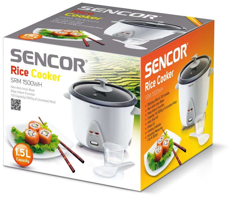 - Objem 1,5 l (pro přípravu 1200 g rýže)