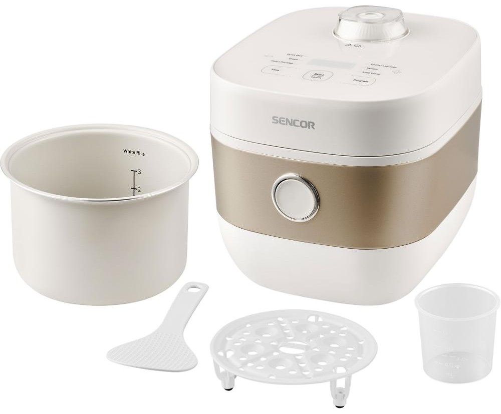 S rýžovarem SRM 1600WH, který je vybaven vnitřním hliníkovým hrncem s keramickým povrchem o objemu 1,6 l, si bez problému připravíte různé druhy rýže, kaše, polévky a další pokrmy. Ovládání je velmi jednoduché díky digitálnímu displeji a 6 přednastaveným programům.