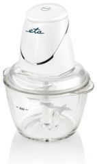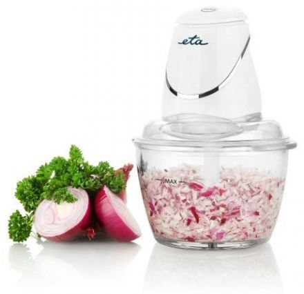 Sekáček ETA 1079 90000 Basto je velmi praktickým pomocníkem v kuchyni. Seká a drtí potraviny ve dvou úrovních na velmi jemnou konzistenci a to především díky odolnému, kvalitnímu nerezovému čtyřramennnému noži. Ořechy, bylinky, ovoce i zeleninu zvládne během pár sekund. Sekáček má 2 rychlostní stupně sekání. Polovičním stlačením jsou otáčky nižší, po plném stlačení se otáčky dostanou do maxima. Rychlost si tak můžete sami regulovat dle požadované hrubosti surovin. Nádoba o objemu 1,25 l je vyrobena z vysoce odolného skla. Na spodu nádoby je protiskluzová gumová podložka, která zajišťuje stabilitu sekáčku při jeho provozu. Součástí nádoby je i víko, které slouží pro uchování a skladování surovin. Pro lepší manipulaci je vybaven i plastovou stěrkou na zužitkování veškerého obsahu nádoby.