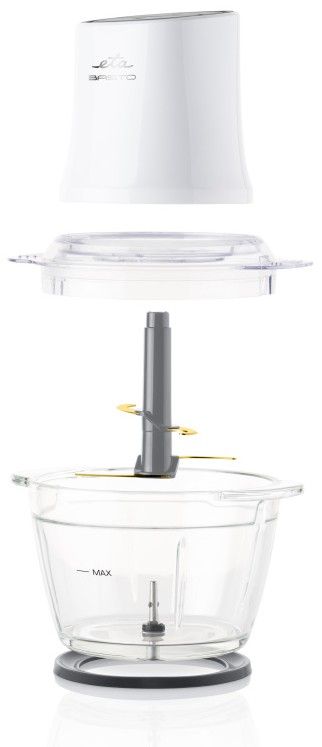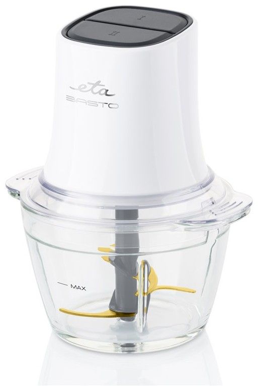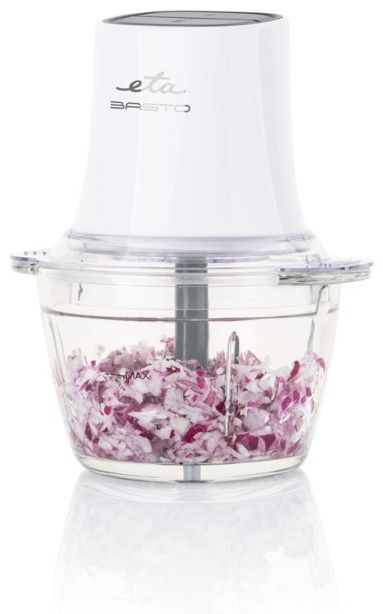 Sekáček se skleněnou nádobou ETA Basto II vám bude v kuchyni opravdu praktickým pomocníkem. Rychle a účinně rozseká, rozdrtí a rozmixuje suroviny na velmi jemnou konzistenci. Díky extrémně ostrému titanovému čtyřramennému noži seká a drtí potraviny až na velmi jemnou konzistenci. Ořechy, bylinky, ovoce i zeleninu zvládne nasekat během pár sekund.