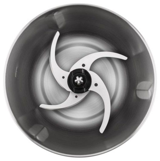 Sekáček má 2 nádoby (0,8 l a 1,5 l) a exterémně ostrý nerezový čtyřramenný nůž.