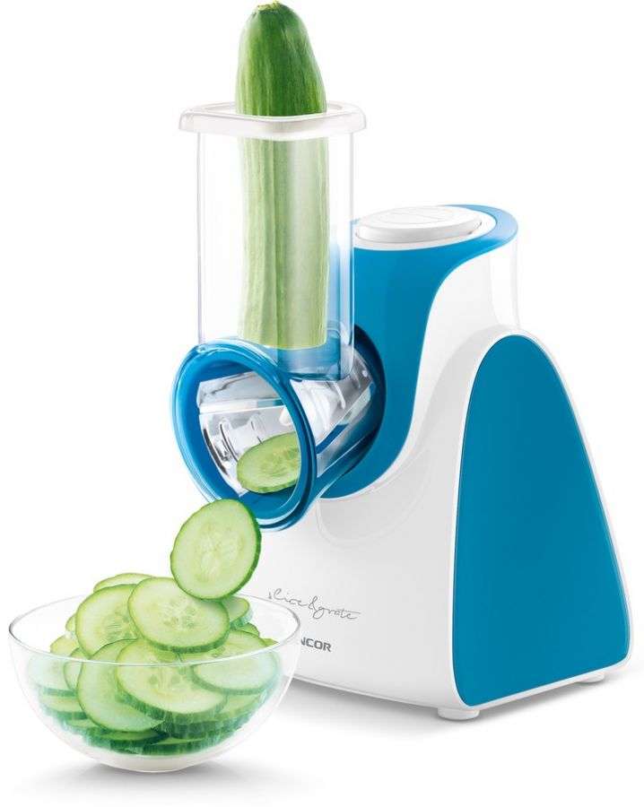 Speciální kráječ a struhadlo na ovoce a zeleninu, který může krájet, řezat a strouhat.