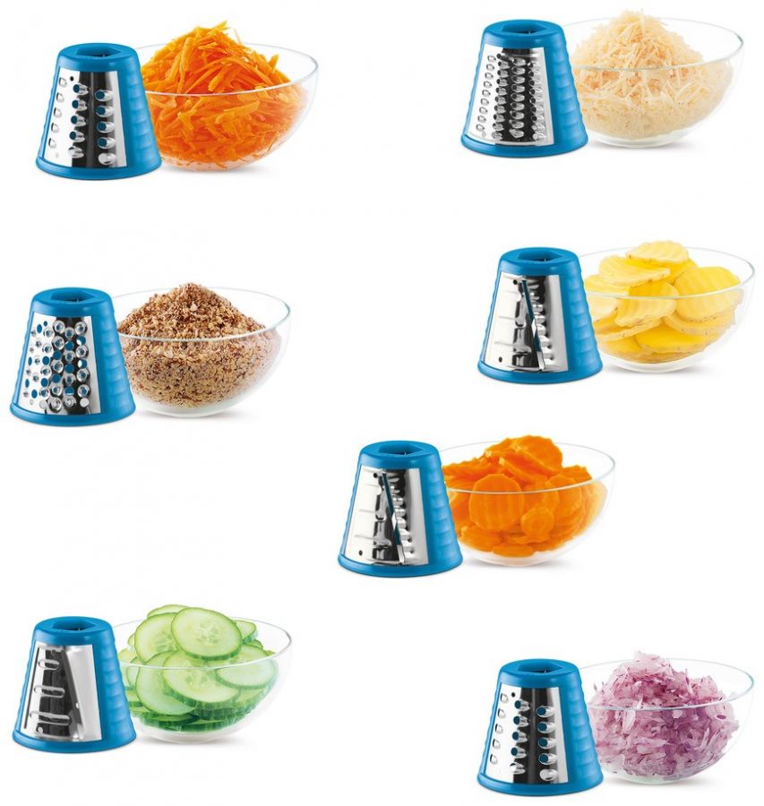 - Hrubé struhadlo vhodné pro strouhání zeleniny do polévek, pro přípravu bramborových placek nebo pro strouhání ovoce a zeleniny do salátů atd.