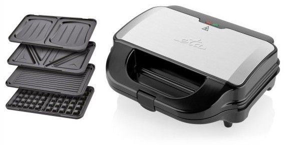 Sendvičovač se 4 páry výměnných desek pro 1000 různých variací zapékání.