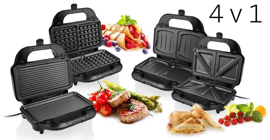 - Sendvičovač 4v1 - sendvičovač (trojúhelníky), sendvičovač (lastury), vaflovač, gril