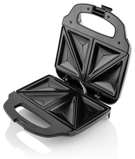 Sendvičovač snadno připraví čtyři sendviče trojúhelníkového tvaru. Vládne nepřilnavými plotnami, tepelně izolovanou rukojetí a zabere minimum prostoru.