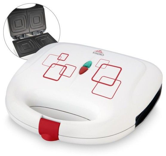 Sendvičovač pro přípravu dvou čtvercových sendvičů. Je vybaven nepřilnavým povrchem a automatickou regulací, vhodný i pro nenáročné kuchaře.