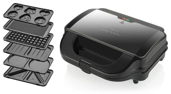 - Sendvičovač 6 v 1 – sendvičovač (trojúhelníky), sendvičovač (lastury), vaflovač, gril / panini, lívance, dětské koláčky