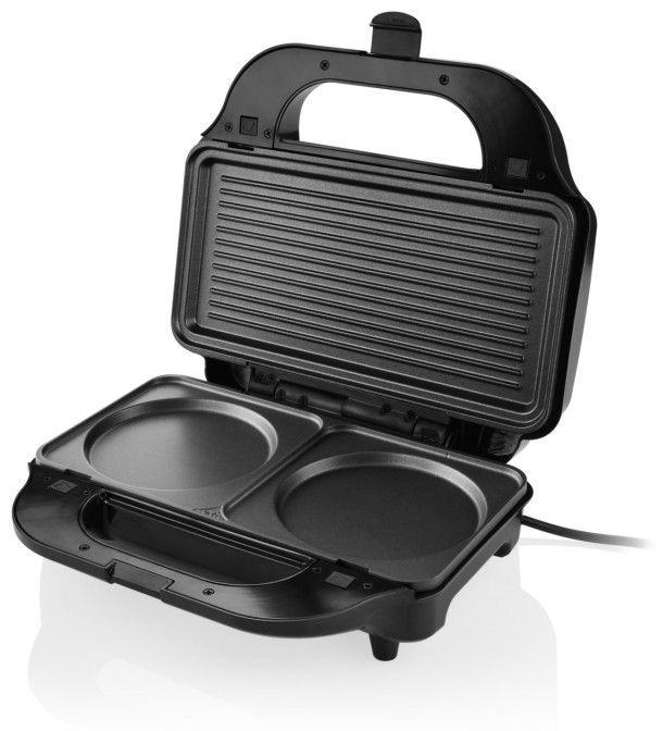 Sendvičovač se 6 výměnnými nepřilnavými deskami pro přípravu toustů, vaflí, panini, grilovaných pokrmů, ale i lívanců a dětských koláčků.
