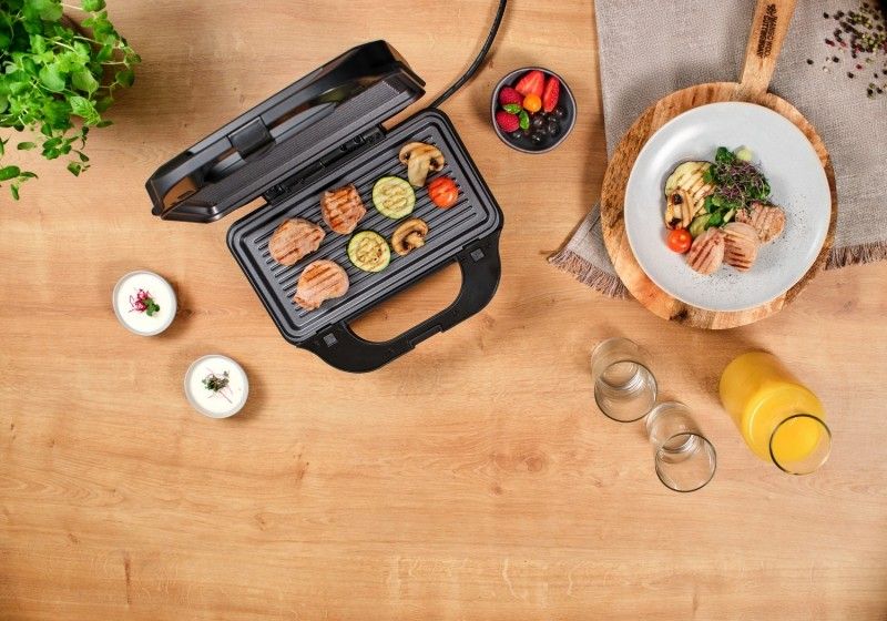 Bezpečný provoz pak zajišťuje ochranná tepelná pojistka a protiskluzové nožky, které zvyšují stabilitu sendvičovače na pracovní ploše.