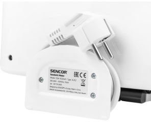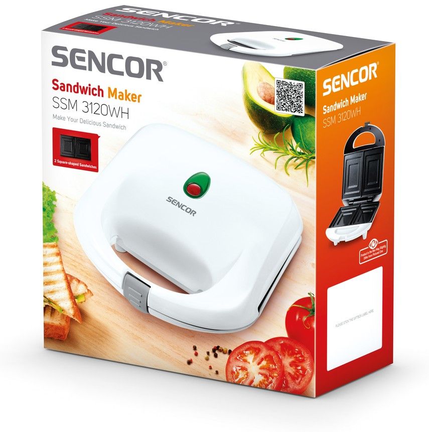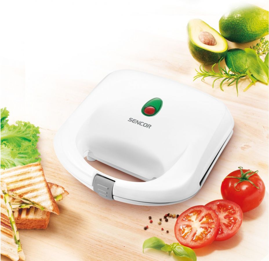 Sendvičovač pro přípravu dvou čtvercových sendvičů. Je vybaven nepřilnavým povrchem a bezpečnostní pojistkou.