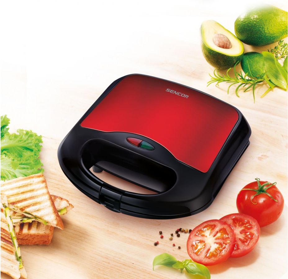 Sendvičovač pro přípravu dvou čtvercových sendvičů. Je vybaven nepřilnavým povrchem a bezpečnostní pojistkou.