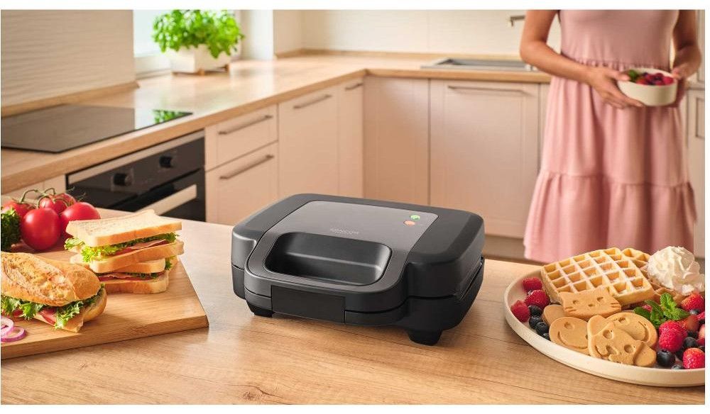 Sendvičovač 6v1 s XL deskami na pečení umožní připravit toasty, panini, vafle, palačinky a lívance.