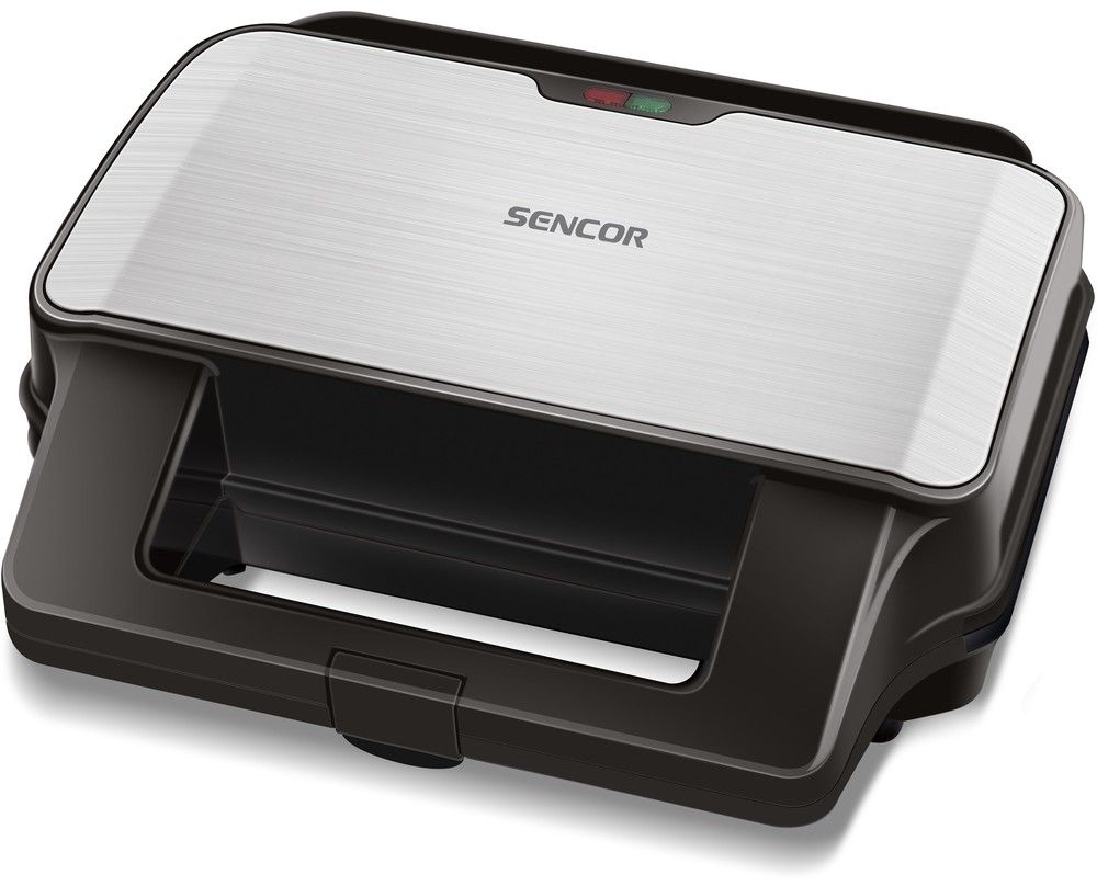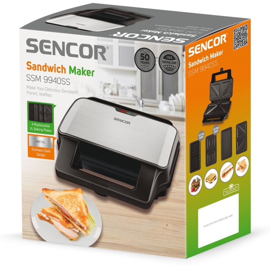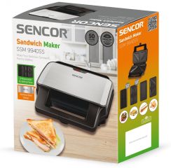 Sendvičovač se 4 páry výměnných desek 285 x 152mm - trojúhelníkový tvar sendviče, panini, 2 extra hluboké pro vafle a sendviče.