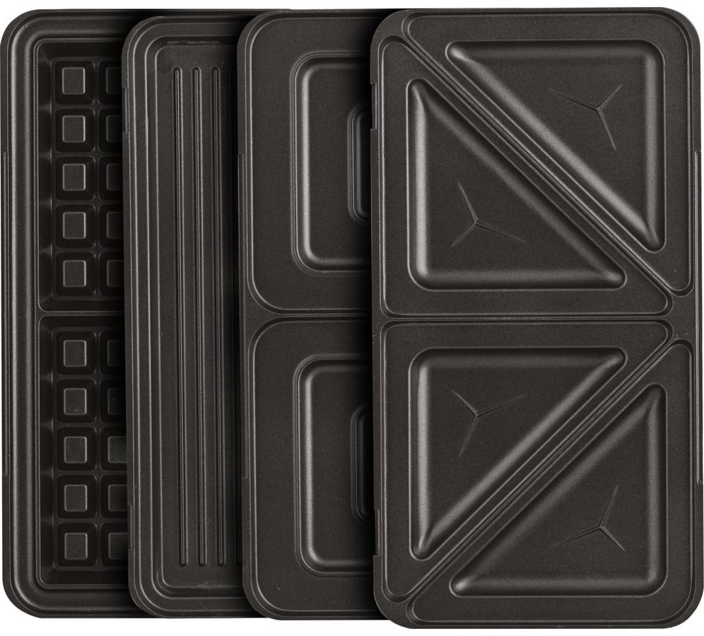 - 4 výměnné desky na pečení 285 x 152mm (trojúhelníkový tvar sendviče, panini, 2 extra hluboké pro vafle a sendviče)