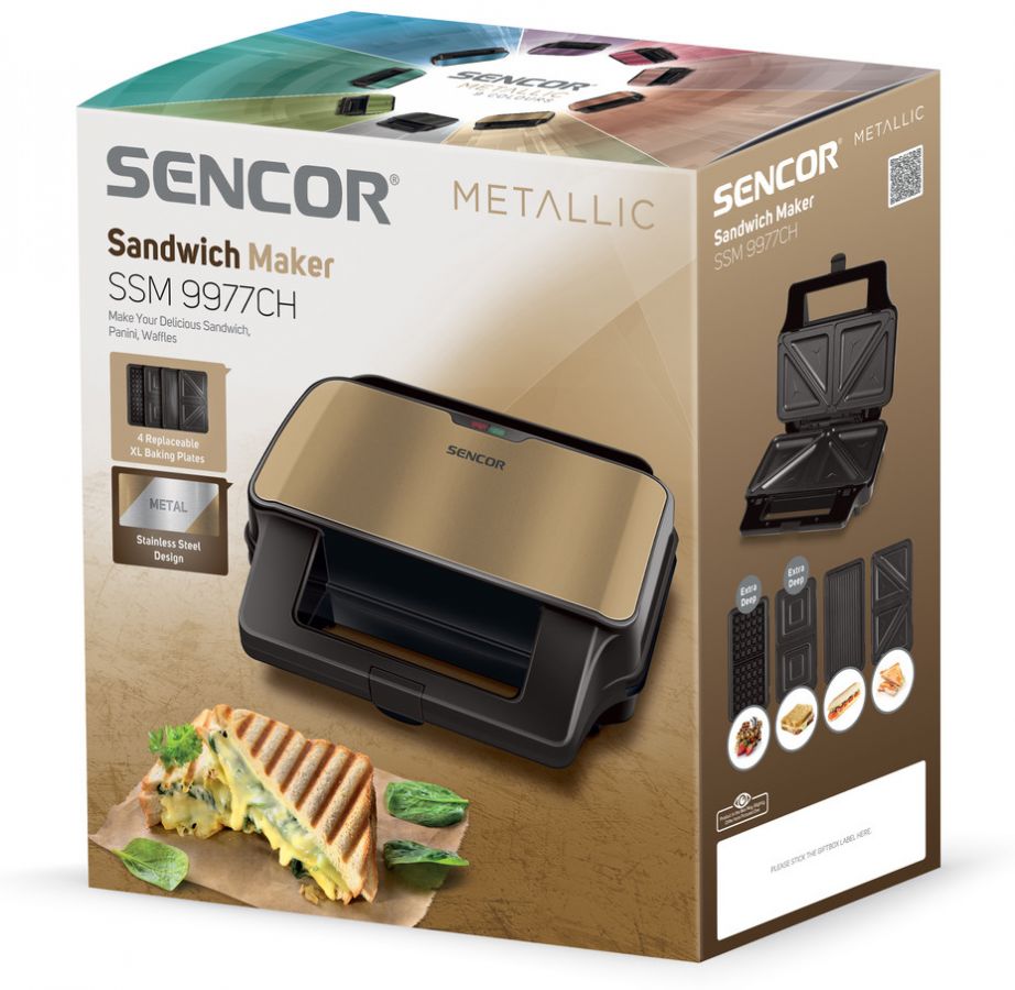 SENCOR SSM9976GD zlatá/černáSendvičovač se 4 páry výměnných desek 285 x 152mm - trojúhelníkový tvar sendviče, panini, 2 extra hluboké pro vafle a...SSM9976GD zlatá/černá1 156 bez DPH1 399 Kč