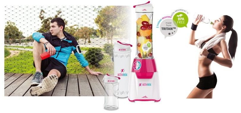 Stolní mixér ETA 0102 90000 ActivMix s výkonem 350 W hravě zvládne přípravu různých druhů ovocných nápojů, smoothie, proteinových fitness nápojů, výživy pro sportovce ale také mléčných koktejlů, alkoholických i nealkoholických osvěžujících drinků. Poradí si s drcením ledu pro přípravu ledové kávy i ledové tříště. Můžete ho použít také při grilování na výrobu dresinků, salsa omáček ale i domácích ovocných přesnídávek a marmelád. Jeho široké využití oceníte nejen při sportu, ale také v horké letní dny, při grilování a dalších společných chvilkách s přáteli.