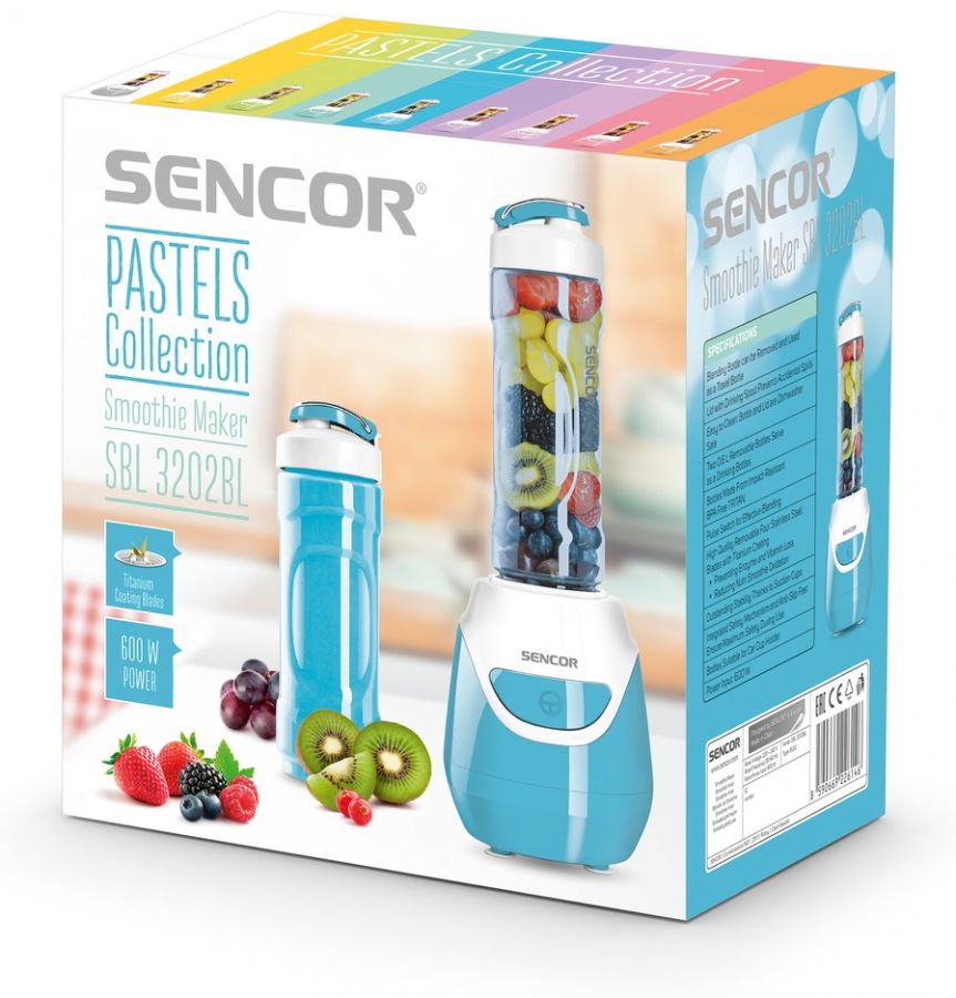 Smoothie mixér má dvě 0,6 l odnímatelné láhve vyrobené z nárazově odolného TRITANU. Mísící láhev může být vyjmuta a použita jako cestovní láhev.
