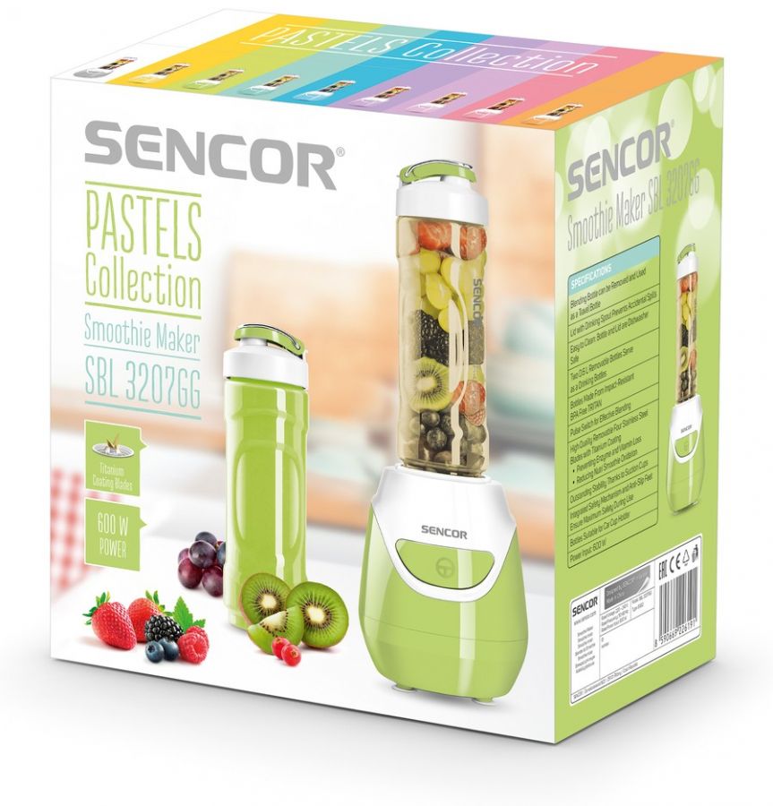 Smoothie mixér má dvě 0,6 l odnímatelné láhve vyrobené z nárazově odolného TRITANU. Mísící láhev může být vyjmuta a použita jako cestovní láhev.