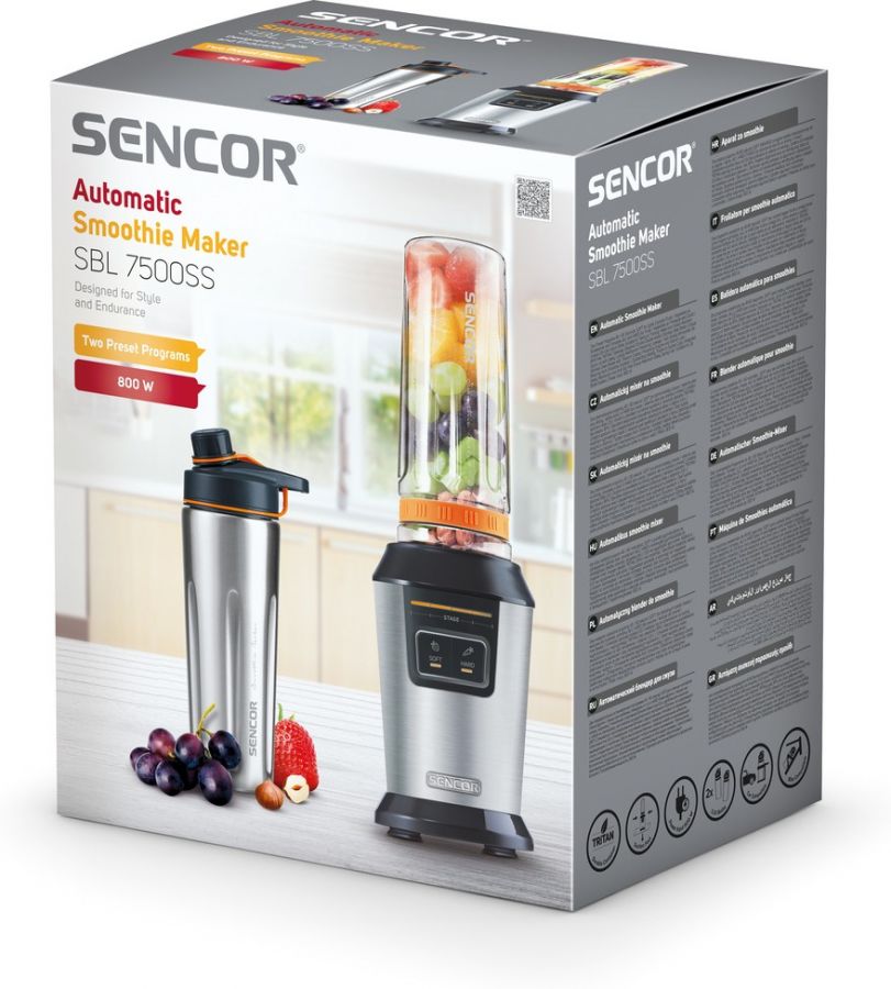 Automatický mixér na Smoothie má dva přednastavené programy, unikátní sportovní láhev 0,6 l z nárazově odolného TRITANU a dvoustěnnou nerezovou láhev o objemu 0,6 l.