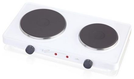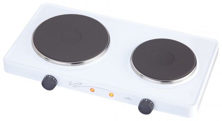 Dvouplotýnkový elektrický vařič z bílého smaltu. Má 2 litinové plotny, plynulou regulaci, světelnou signalizaci provozu a bezpečnostní pojistku. Je vhodný na chalupu, do menších bytů či studentských kuchyní.