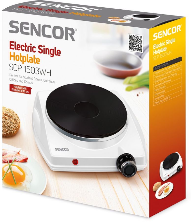 Jednoplotýnkový elektrický vařič. Má plynulou regulaci termostatu, světelnou signalizaci provozu a ochranu proti přehřátí. Je vhodný na chalupu, do menších bytů či studentských kuchyní.