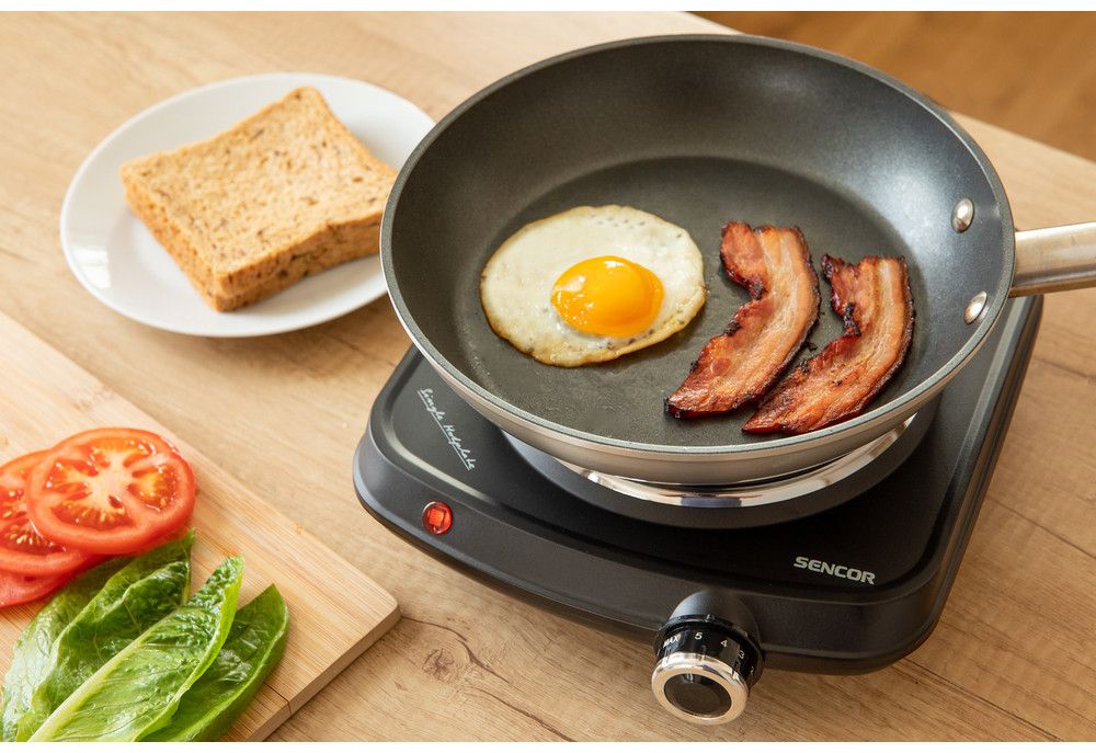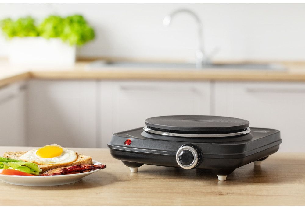 Jednoplotýnkový elektrický vařič má plynulou regulaci, světelnou signalizaci provozu a bezpečnostní pojistku. Je vhodný na chalupu, do menších bytů či studentských kuchyní.