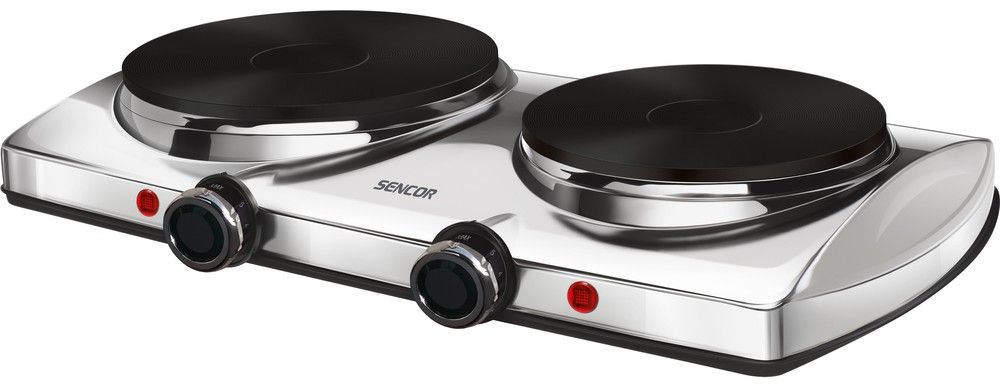 Dvouplotýnkový elektrický vařič. Má plynulou regulaci termostatu, světelnou signalizaci provozu a ochranu proti přehřátí. Je vhodný na kolej, chatu, do kanceláře nebo do kempu.