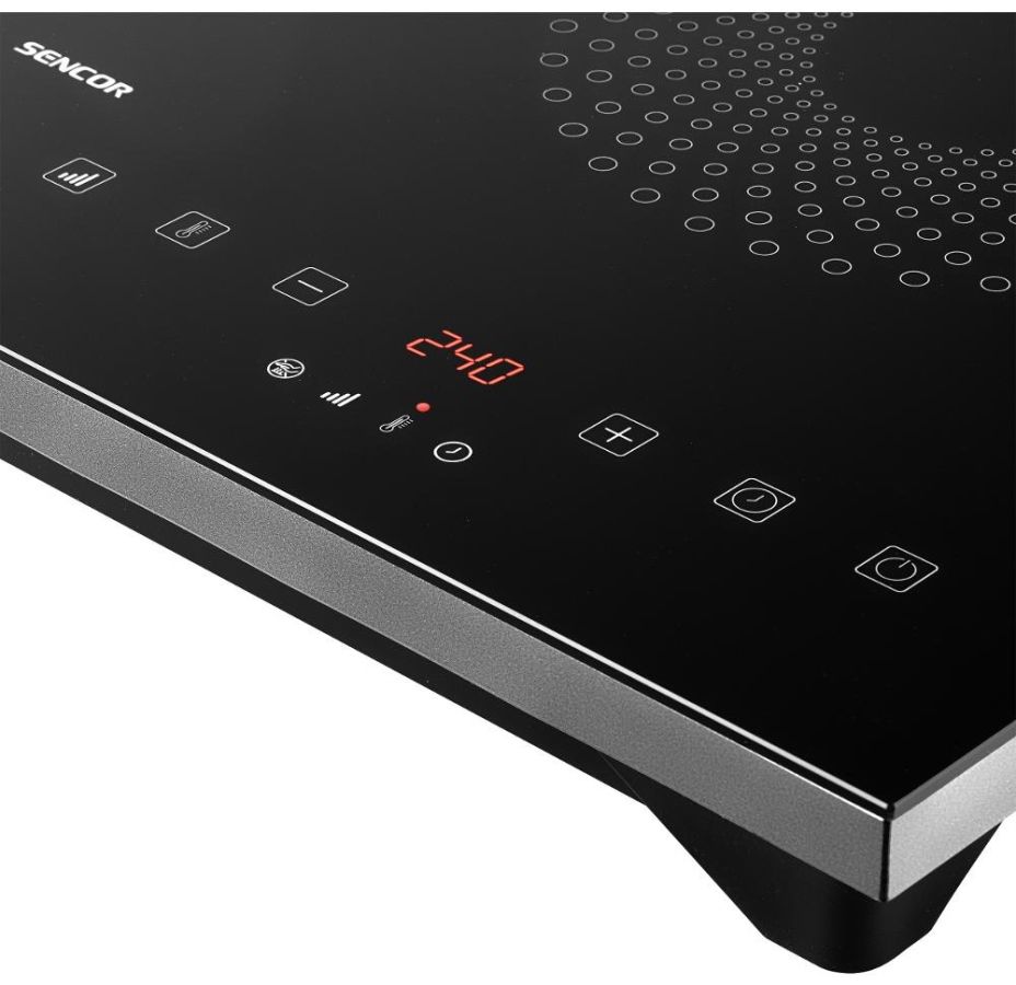 Vařič a jednotlivé funkce ovládáte dotykovými tlačítky. O teplotě a výkonu vás informuje přehledný velký LCD displej s červeným podsvětlením.