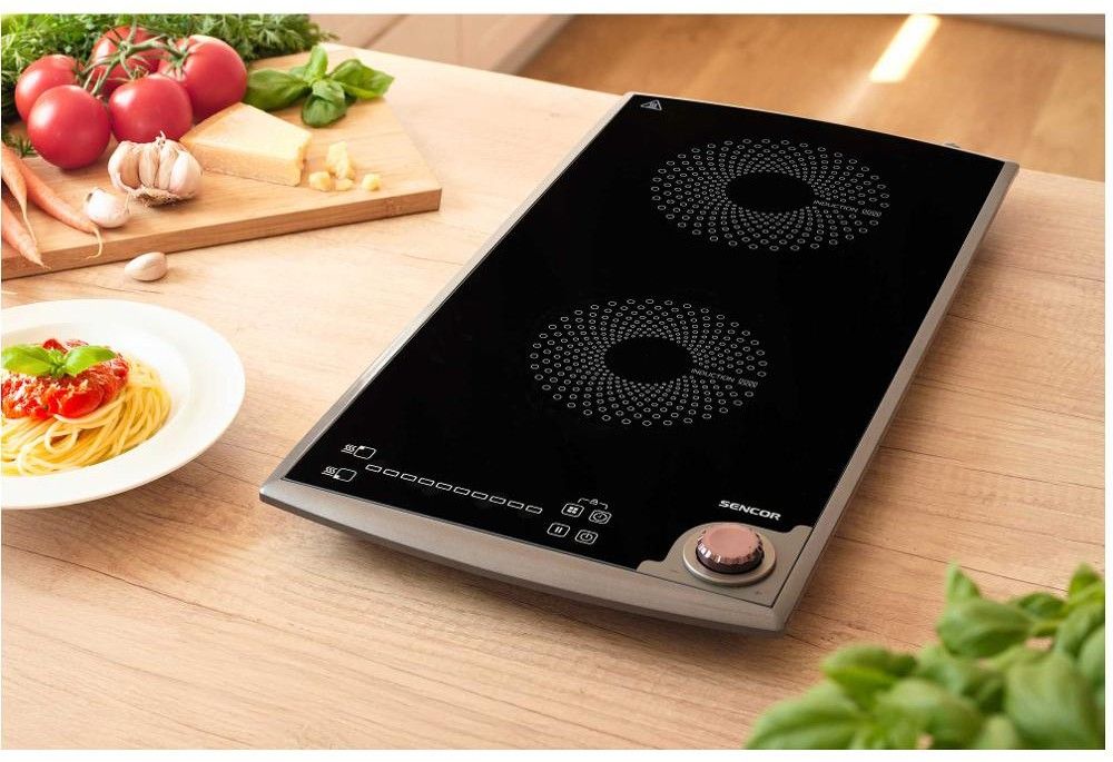 Ať už hledáte doplněk ke klasickému sporáku nebo ideální řešení na chatu, do karavanu nebo třeba na kempování, dvouplotýnkový indukční vařič Sencor SCP 5414GY je přesně pro vás. S kombinovaným výkonem 3 100 W a hned 10 teplotními úrovněmi (60–240 ℃) bez potíží na 2 nezávislých plotýnkách uvaříte či usmažíte to, na co máte právě chuť. Má jednoduché ovládání dotykem prstu a otočným knoflíkem, časovač od 1 minuty po 3 hodiny, a díky kompaktním rozměrům je snadno přenosný.