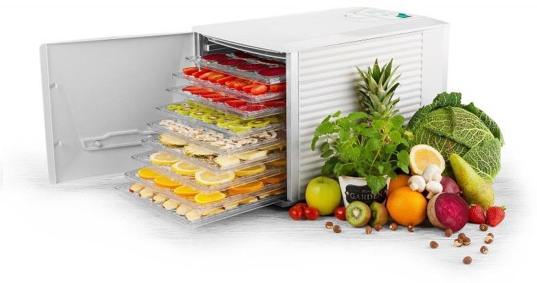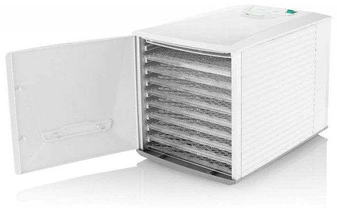 Sušička potravin pro zdravý způsob přípravy a konzervace potravin. Má 9 sušících sít včetně sušícího plata pro sušení drcených potravin (bylinky, koření atd.).
