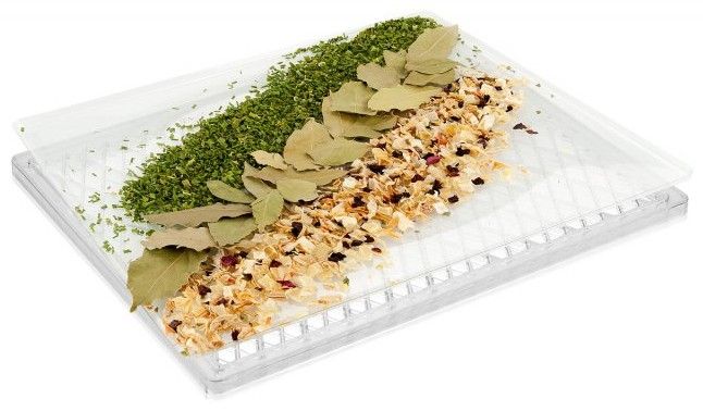 - Speciální sušicí plato pro drcené potraviny (např. bylinky, koření a RAW produkty)
