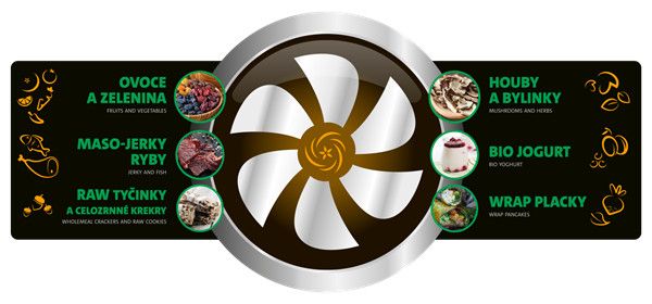 - Přednastavený program pro přípravu RAW stravy (např. Wrap placky, Celozrnné krekry, Domácí cereálie), (45 °C / 24 hodin)