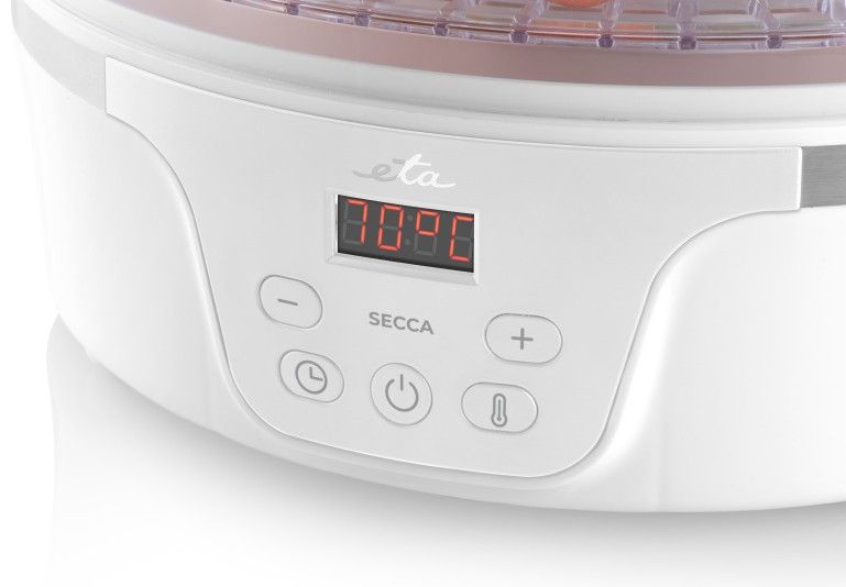 Sušička potravin je spotřebič, který je v provozu i několik hodin. Proto je sušička potravin ETA Secca vybavena bezpečnostní ochranou proti přehřátí. Nechybí zde ani zvuková signalizace. Délka napájecího kabelu je 70 c.