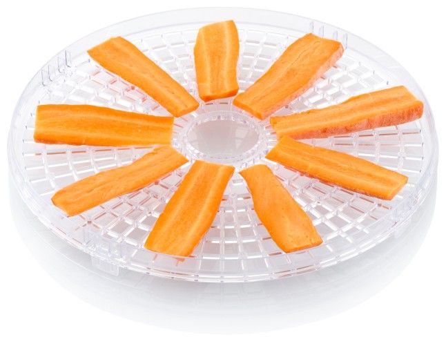 K dispozici máte hned 5 sušicích sít a 1 sušicí síto pro drobné potraviny a bylinky. Sušicí síta neabsorbují chuť ani vůni a jsou vyrobena z kvalitních a bezpečných BPA FREE materiálů. Počet sít, které zrovna použijete je jen na vás a vašich plánech. Stejně tak si můžete nastavit i vzdálenost mezi jednotlivými síty (14 – 28 mm). Průměr jednoho síta je 28,8 cm.