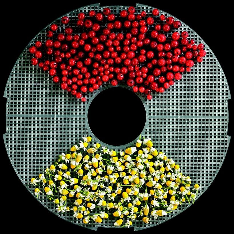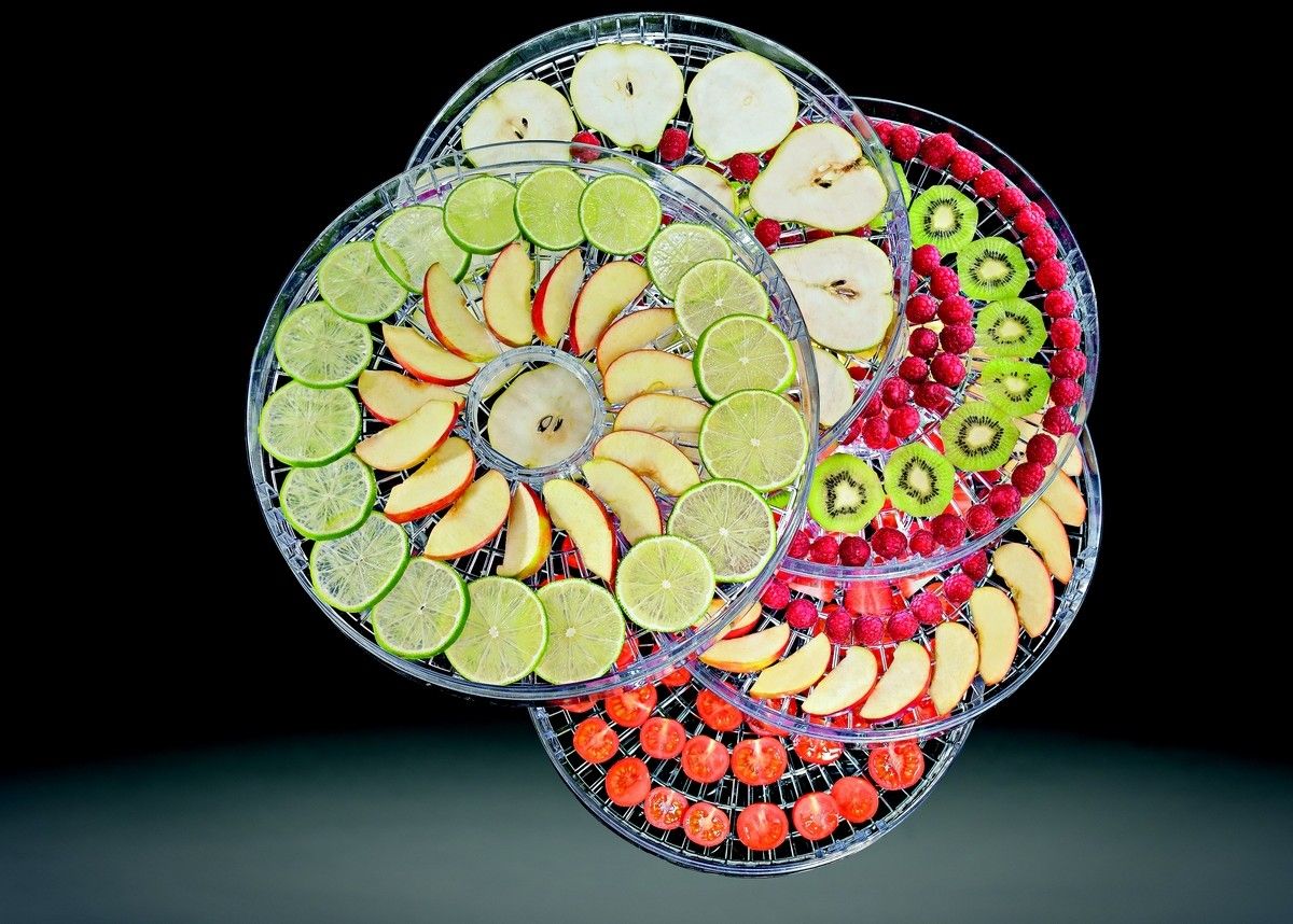 Tento úžasný spotřebič vám umožní sušit potraviny na 5 plátech, které se snadno naskládají na sebe a upravit jejich výšku do dvou úrovní, na 2,8 cm nebo 5 cm. Můžete tak uchovávat zeleninu, ovoce, bylinky, chléb, těstoviny, sušenky, houby, maso nebo ryby najednou. Součástí sady je síto, které se hodí na sušení menších kousků potravin.