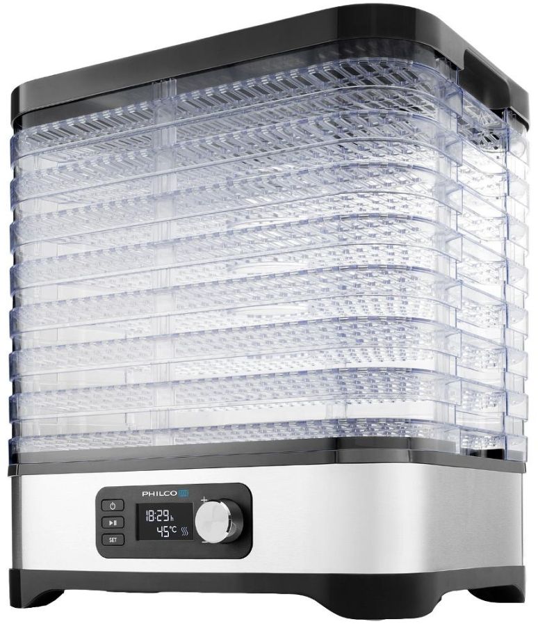 Sušička PHFD 5080 je vhodná, díky svým kompaktním rozměrům a zároveň komfortu 8 plat, která jsou vyrobena ze zdravotně nezávadného materiálu, nabídnout dostatečný prostor a jsou průhledná, takže se můžete kochat procesem vysoušení.