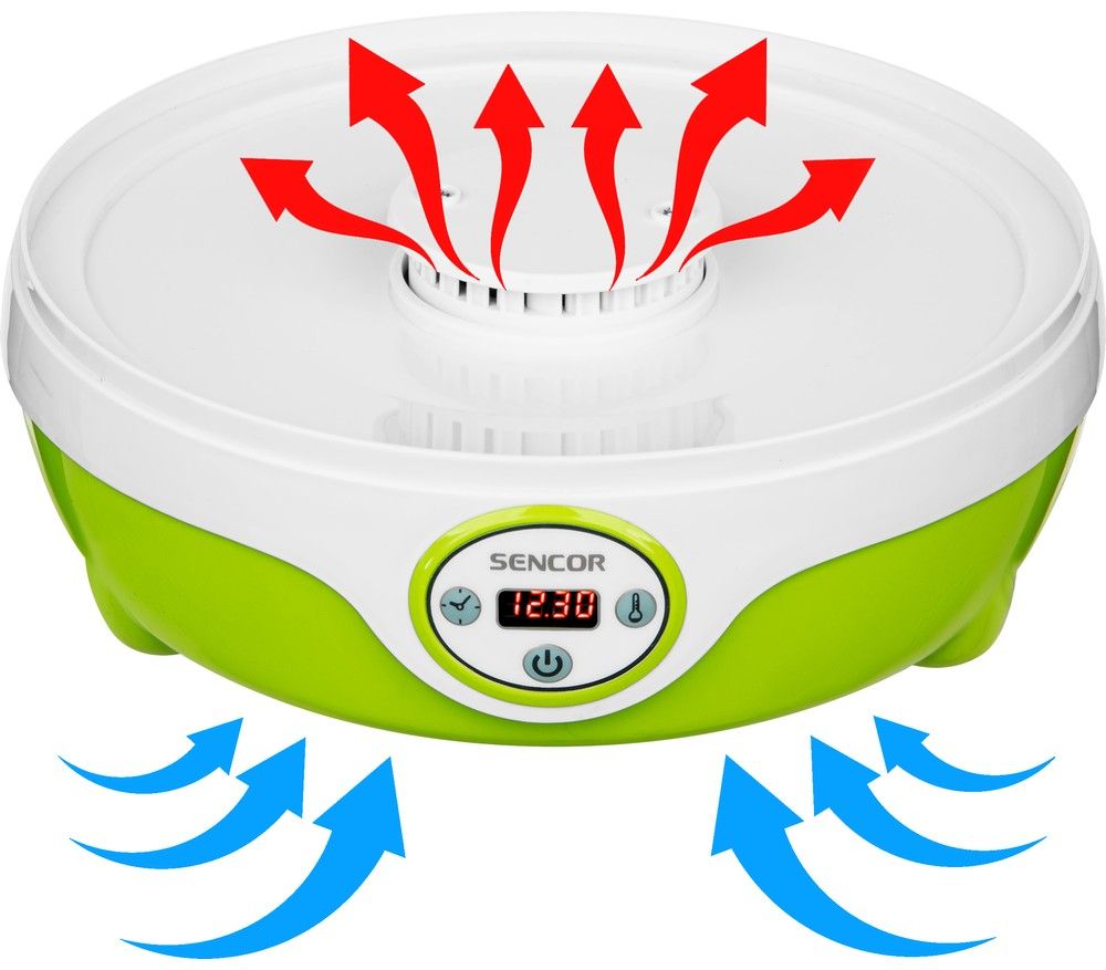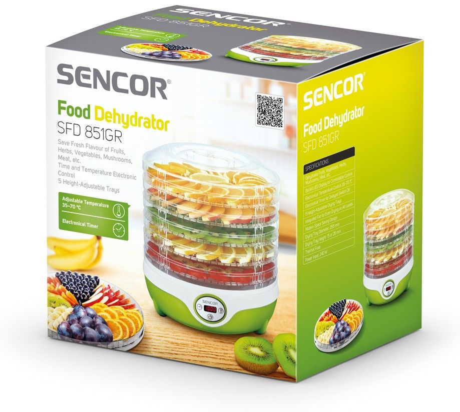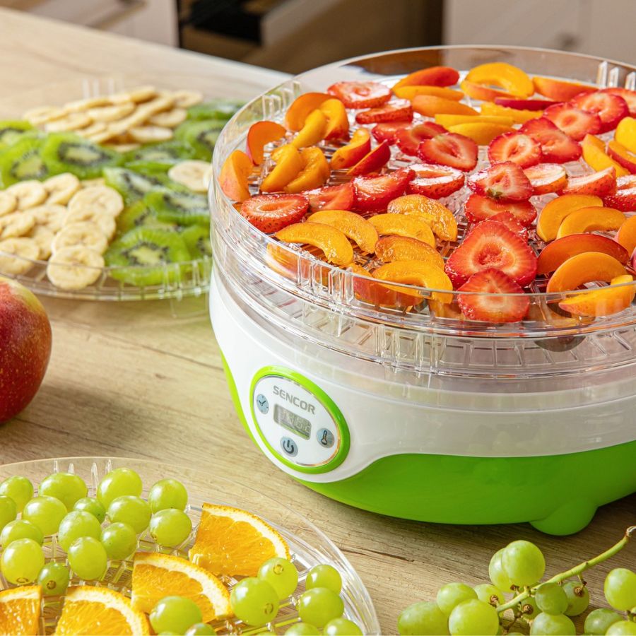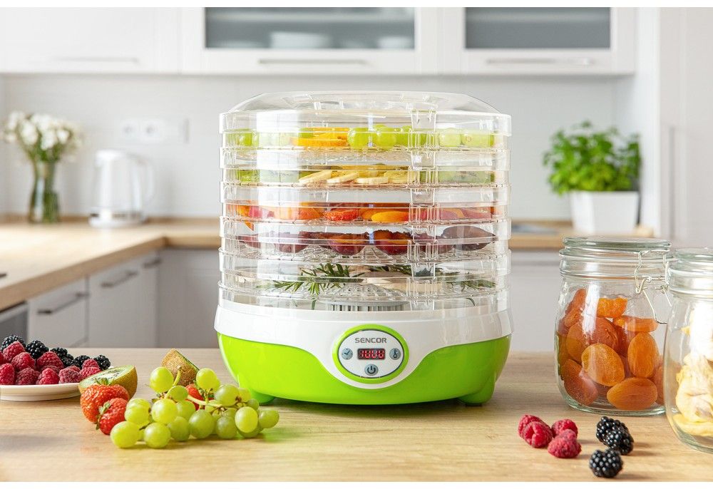 Sušička potravin suší ovoce, zeleninu, houby, bylinky, maso a jiné druhy potravin. Má 5 sušících sít, s nastavitelnou výškou, v základní výbavě.