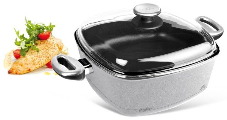 Masivní indukční pekáč s nepřilnavým povrchem, titanovou vrstvou a praktickou skleněnou poklicí pro dušení pokrmů. Vhodný na všechny typy sporáků včetně indukce a do pečící trouby.