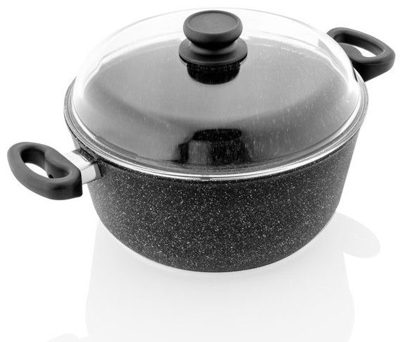 Díky modernímu a elegantnímu designu se hrnec s poklicí hodí do každé kuchyně. Hrnec o objemu 6,3 l, rozměrech 280 x 130 mm a hmotnosti 3 kg je vyroben z kvalitního granitového nepřilnavého povrchu, který je snadno omyvatelný a umožňuje mytí v myčce nádobí. Hrnec s poklicí lze umývat i v myčce na nádobí.