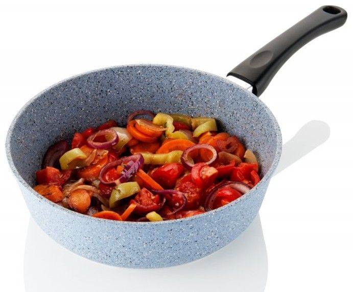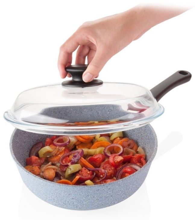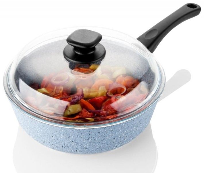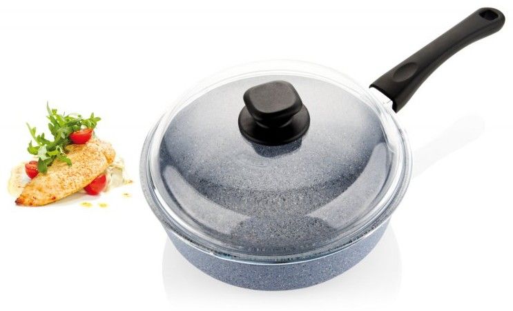 Pánev o průměru 24 cm a výšce 7 cm s nepřilnavým povrchem, granitovou vrstvou a skleněnou poklicí. Vhodná pro přípravu steaků, omáček nebo dětských pokrmů.