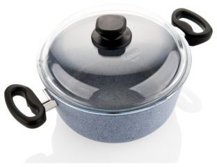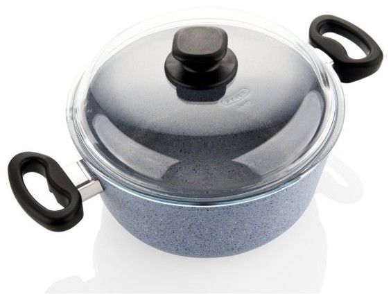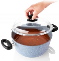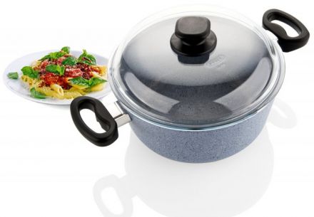 Hrnec s poklicí s nepřilnavým povrchem, granitovou vrstvou a skleněnou poklicí. Vhodný pro přípravu těstovin, rizota a příloh.