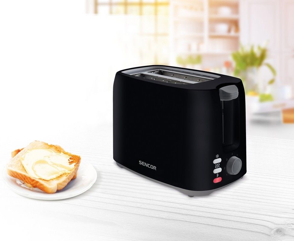 Topinkovač pro opékání 2 toastů současně. Má elektronický časovač, 7 stupňů opékání a výsuvnou nádobu na drobky.