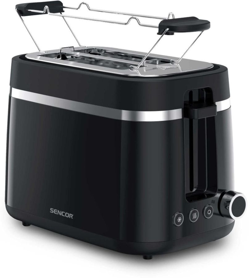 Topinkovač pro opékání 2 toastů současně. Má funkci 3v1, automatické vypnutí, funkce automatického centrování pro rovnoměrný ohřev a zásobník na drobky pro snadné čištění.
