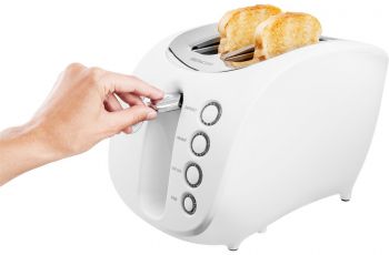 Topinkovač 3v1 pro opékání 2 toastů současně. Má elektronický časovač, 6 stupňů intenzity opékání a výsuvnou nádobu na drobky.